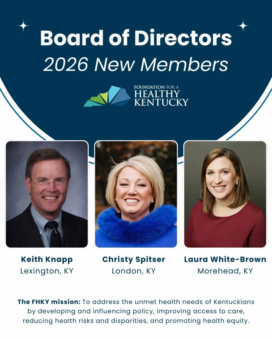 OUR MISSION: Addressing the unmet health needs of Kentuckians by developing and influencing policy, improving access to care, reducing health risks and disparities, and promoting health equity.